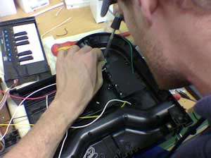 Beim Umbau ist auf ein paar Kleinigkeiten zu achten. So zum Beispiel versucht der Hersteller mit wüsten Verkabelungen den Techniker zu verwirren, um damit einen Umbau des Gerätes zu vermeiden. Doch das Technik-Team von Tribal Voice lässt sich dadurch nicht abschrecken.