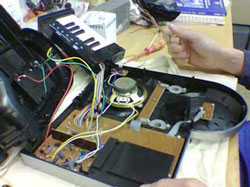 Dem nicht genung. Das unscheinbare Keyboard stört den Umbau nicht direkt. Doch leider mussten wir feststellen, dass der Wiedereinbau mit Absicht vom Hersteller erschwert wird; eine Feder, die das Keyboard im Gebrauchsfall aus dem Gehäuse drückt, wirkt mit immenser Kraft gegen den Wiedereinbau. Doch nach kurzer Zeit wurde auch dieses Problem gelöst. (Die Berechnung der Federkonstanten D der besagten Feder, wird an dieser Stelle, um Verwirrung zu vermeiden, nicht veröffentlicht.) Nachdem nun alle grösseren Probleme erörtert wurden, kommen wir wieder zum endgültigen Zusammenbau. Hier sei noch erwähnt, dass auch aus Gründen der Verunsicherung durch seitens des Herstellers, nach dem Öffnen sich eine Menge Kleinteile ansammeln. Damit wird versucht, dem Techniker zu implementieren, er habe wohl etwas falsch gemacht. Im Normalfall bleiben bei Reparaturen keine Teile übrig, doch hier wurde gezielt Material eingebaut, um diesen psychologischen Trick anzuwenden und den Techniker zu traumatisieren. Wir werden uns mit unseren Partnern (Siemens, Motorola, Infinion) besprechen, um eventuell die geheimen Schaltpläne eines Tages hier veröffentlichen zu können. |